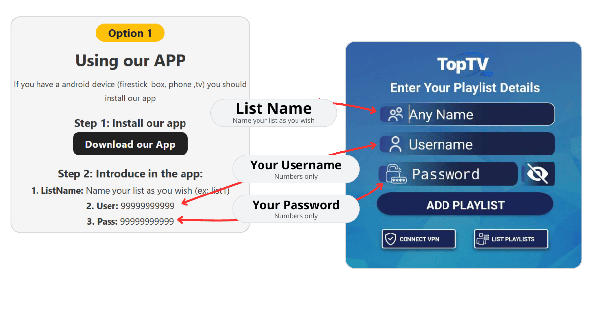- Host/URL: Your provider’s server (ex: http://example.com:8080).